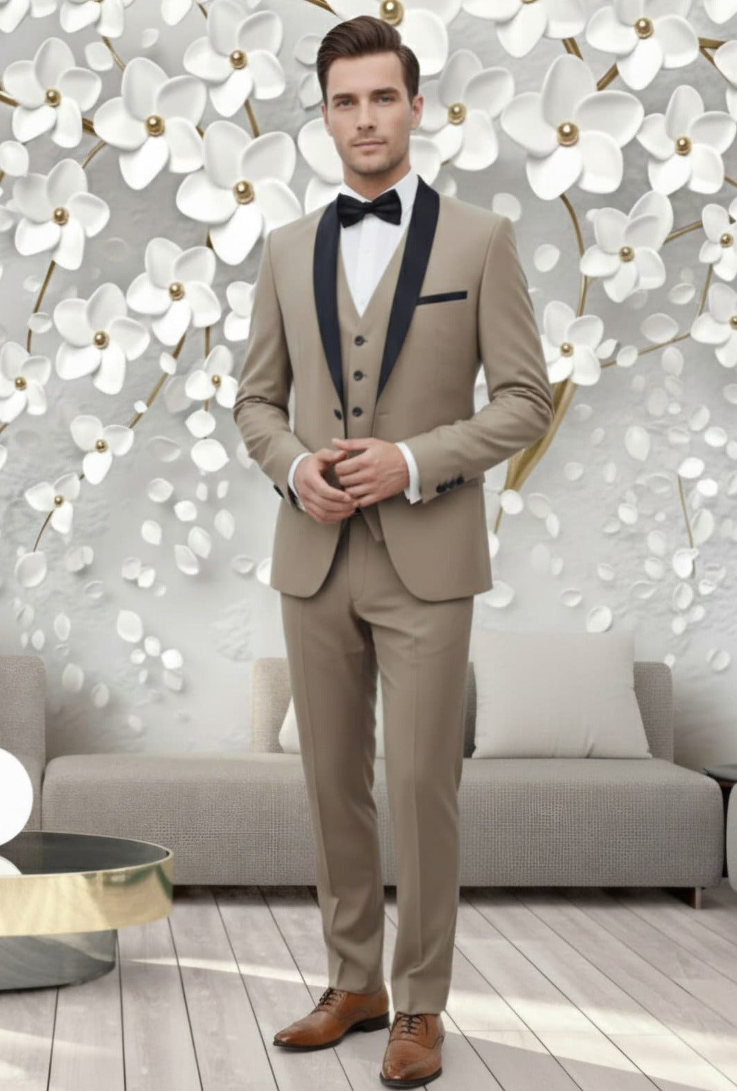 FABIO FABRINNI 3PC SLIM FIT SUIT, 2 BUTTON, BLACK SATIN SHAWL LAPEL, WITH VEST