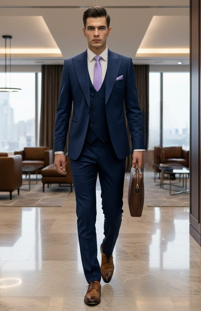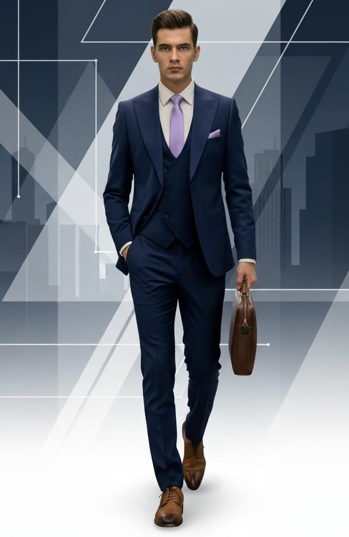 GIOVANNI TESTI SLIM FIT Suit with Stretch Fabric, Peak Lapel, 1 Button, Double Breast Vest, Center Vent.