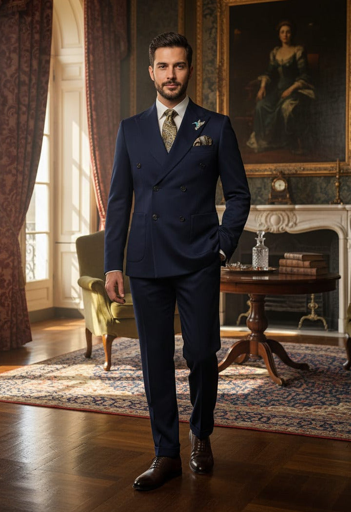 GIOVANNI TESTI 2 Piece Double Breast Slim Fit Suit with 6 Buttons. Peak Lapel and Center Vent.